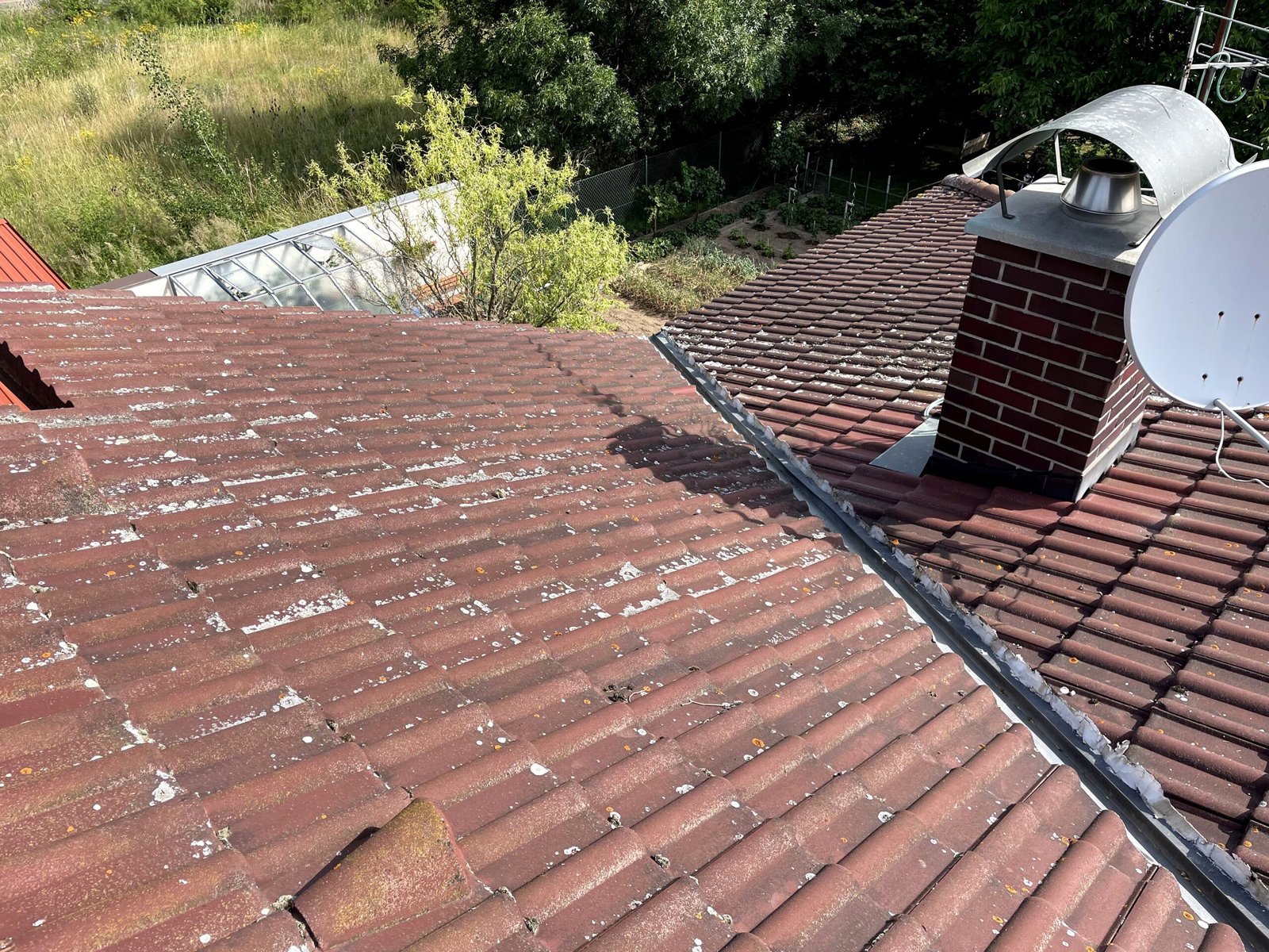 Ze střechy odstraníme řasy, plísně i mech, který se na krytině postupem let usadil.